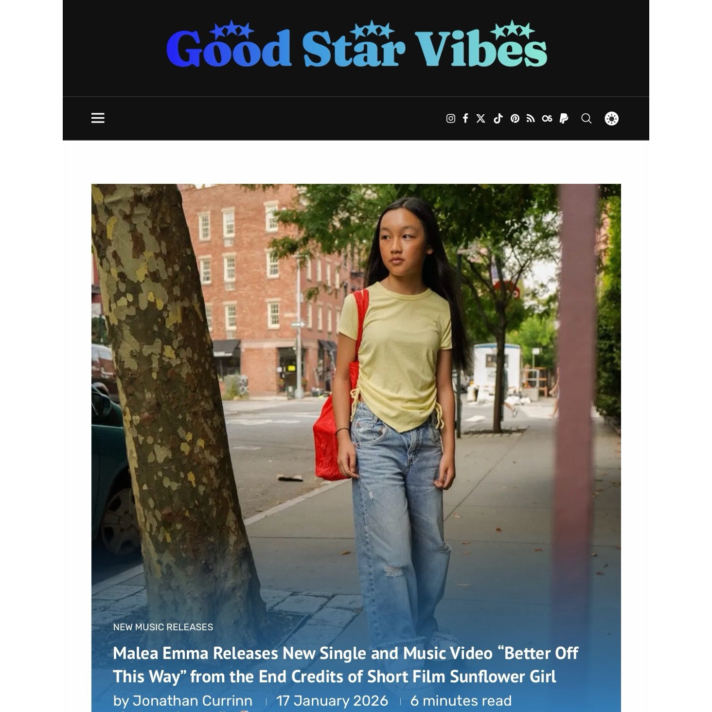 GOOD STAR VIBES - Malea Emma Releases New Single and Music Video “Better Off This Way” from the End Credits of Short Film Sunflower Girl (01/17/26)